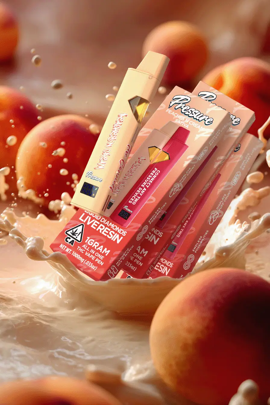 Live resin stands out due to its unique extraction process, which involves freezing the plant immediately after harvest. This method preserves the plant’s terpene profile, resulting in a more aromatic and flavorful product compared to other extracts. The use of live resin in Pressure Extracts’ Peaches N Cream disposable vape provides a rich, full-bodied taste that is both potent and enjoyable.
